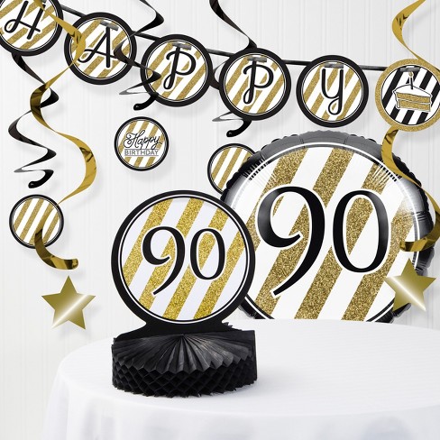 90th Birthday Party Decorations Kit Black Gold Target