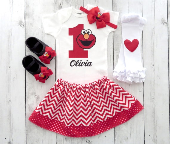 Elmo birthday outfit halloween tutu skirt and shirt bodysuit newborn to 5t 1st birthday 2nd 3rd. 5 out of 5 stars 11 11 reviews 45 00. Perfect for elmo theme birthday sesame street party cakesmash gift photoprop3 pc outfit includes 1 white bodysuit with 1 elmo appliqué name can be added send email with order number to add name 2 red black all around satin ruffle bloomerskirt 3 matching shabby f.