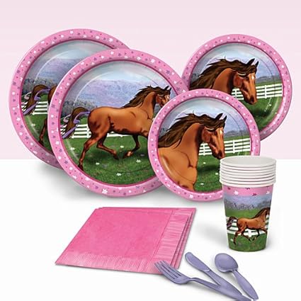 Favorite add to. Horse pony party supplies. Horse birthday party supplies includes 24 9 plates 24 7 plates 24 9 oz cups 50 lunch napkins for cowgirl decorations girls pink riding pony theme wester themed decoration.